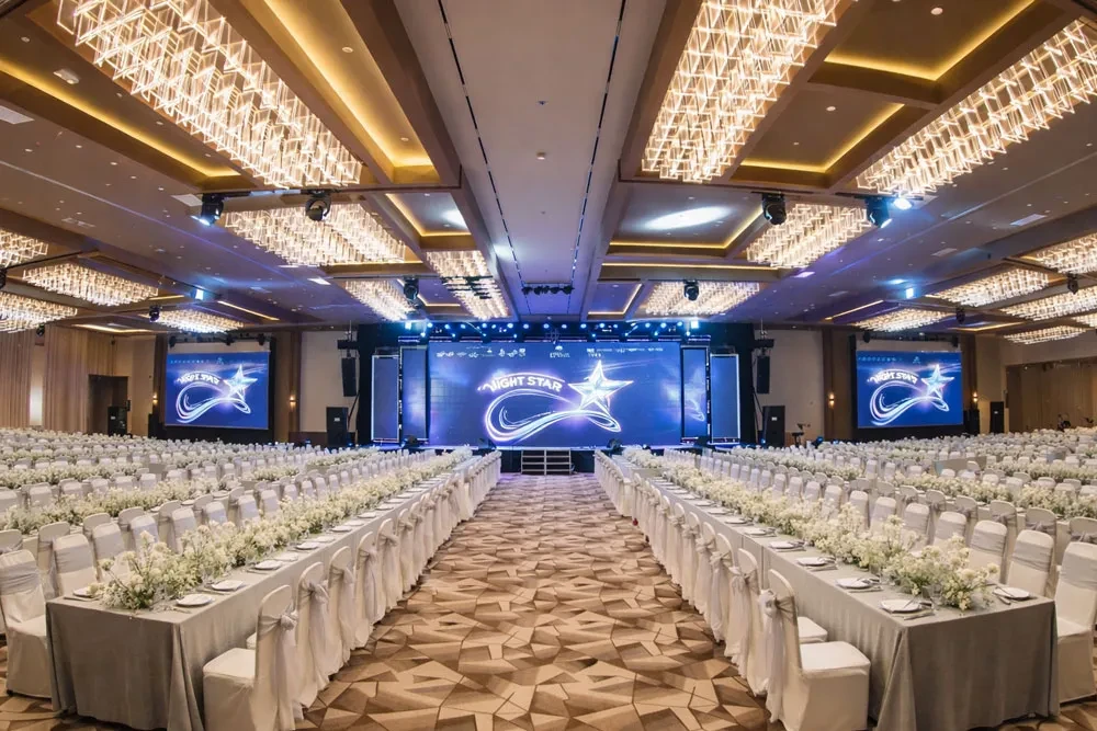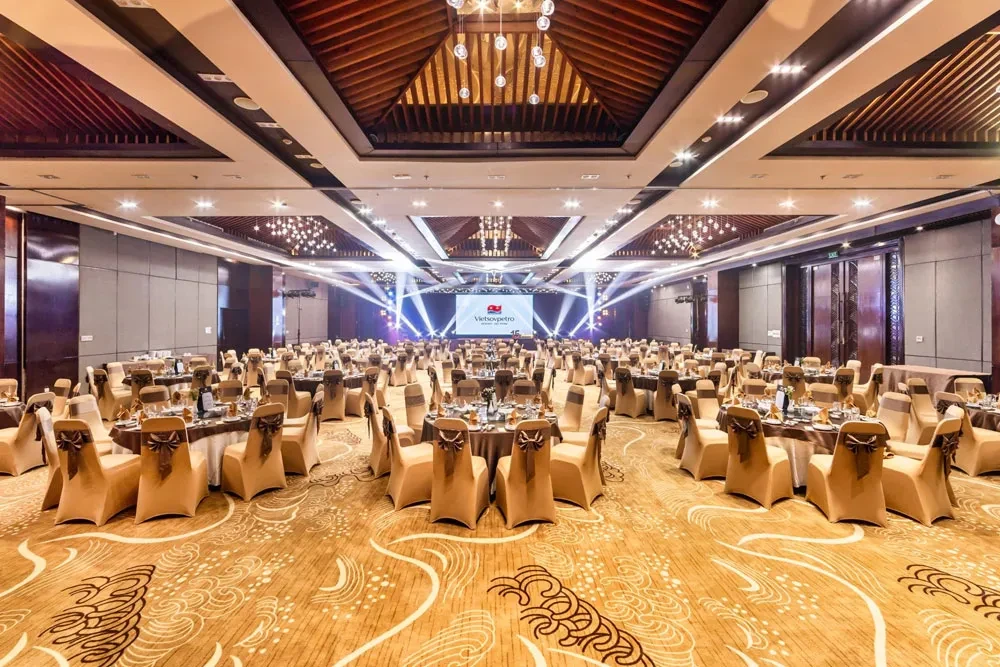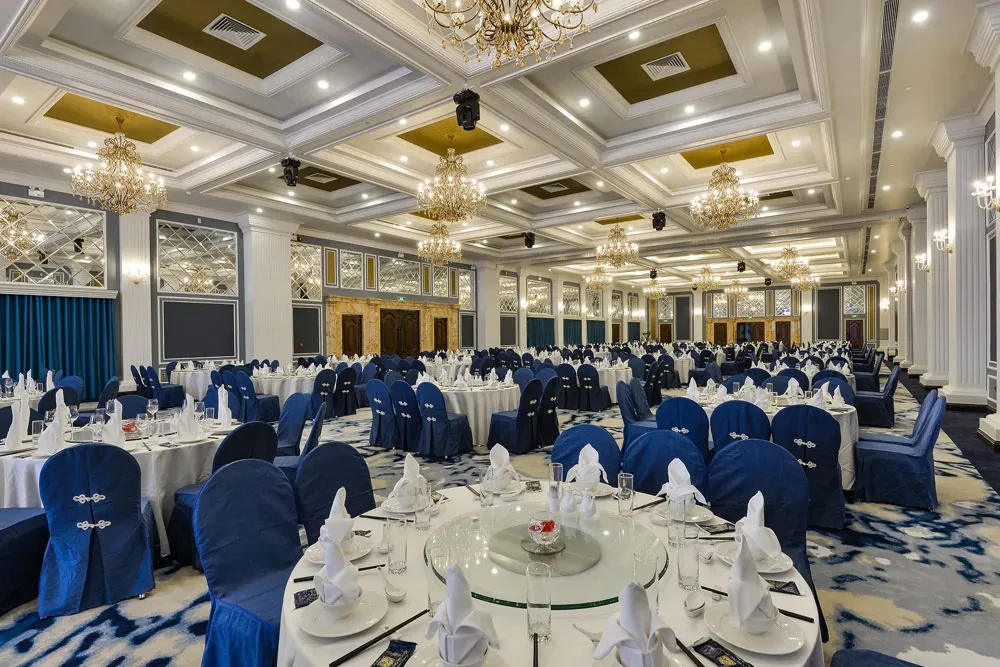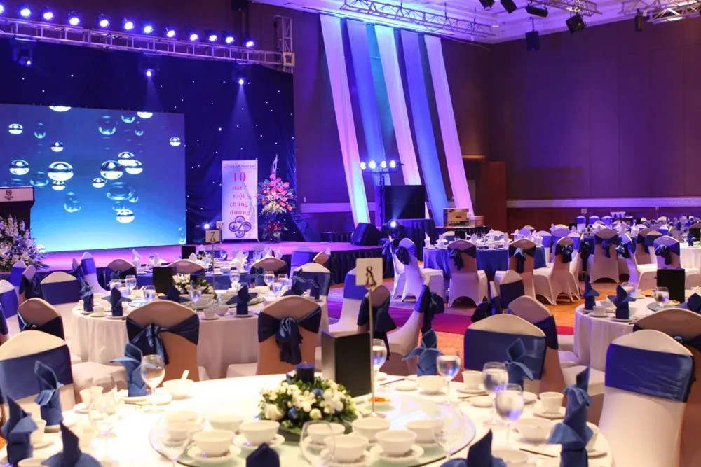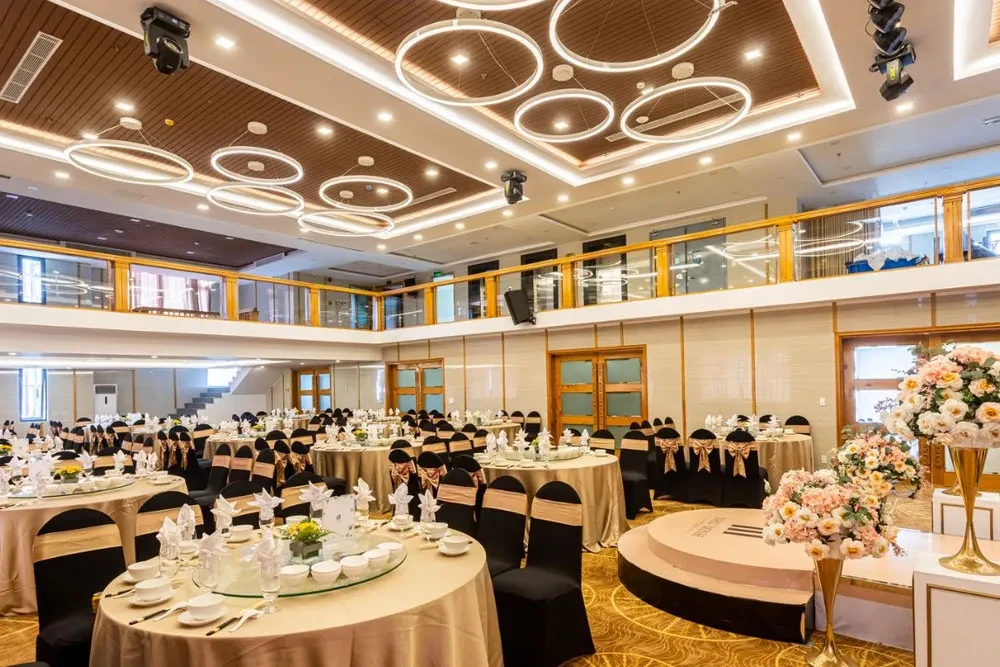 Nâng cấp không gian với backdrop theo nhận diện thương hiệu, âm thanh – ánh sáng hiện đại, MC (nếu cần), tea-break cao cấp và thực đơn hải sản nâng cấp, phù hợp cho hội nghị khách hàng hoặc ra mắt sản phẩm.